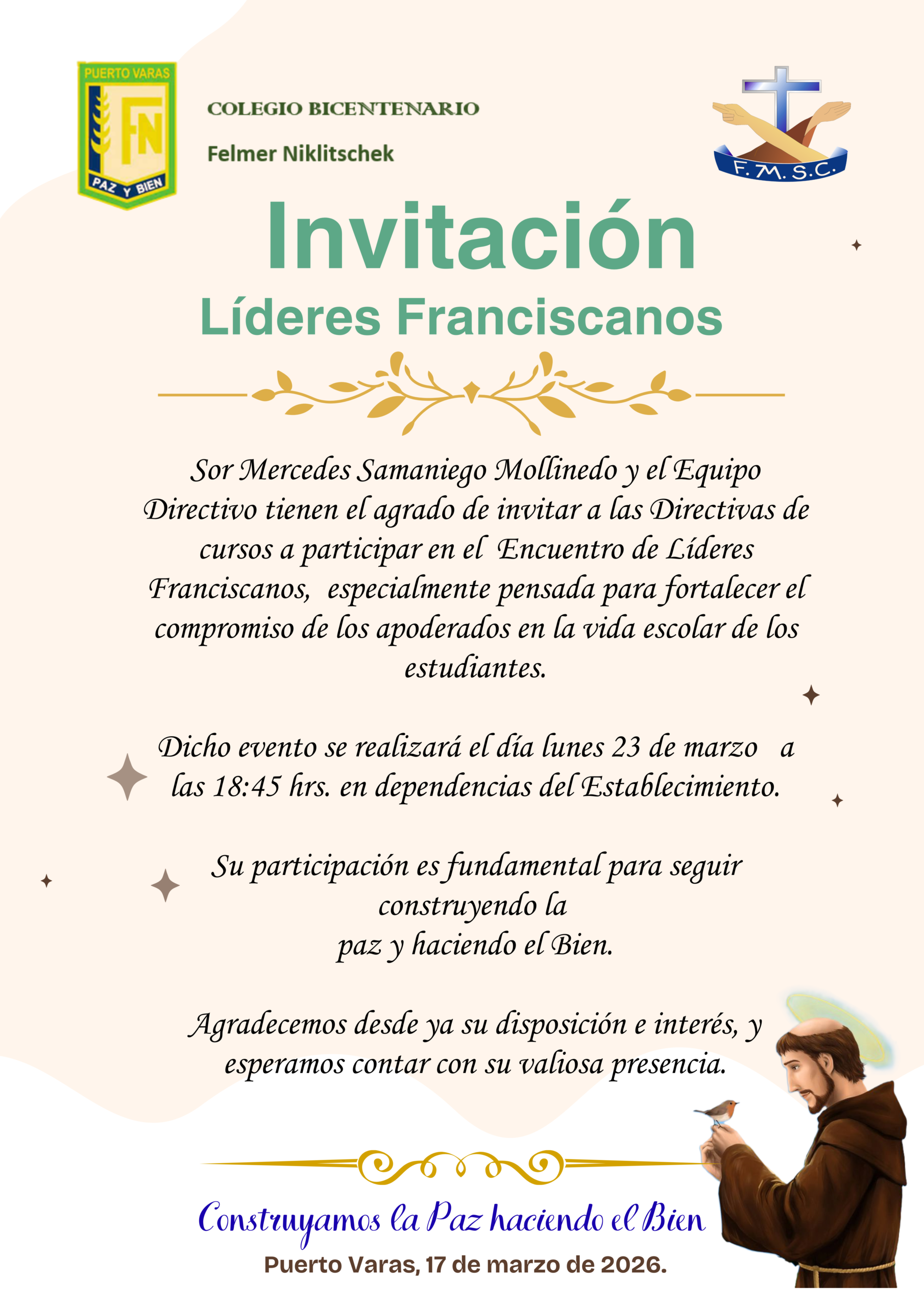 Proyecto Educativo Institucional (PEI) año 2024-2027, que será la brújula que nos indicará cuáles son los fundamentos en los cuales tenemos que guiarnos para dar a la institución el estilo educativo que nos tiene que caracterizar, teniendo como base que el colegio Bicentenario Felmer Niklitschek es un colegio confesional católico, que quiere vivir su fe animada por la espiritualidad franciscana y el carisma propio de las Religiosas Franciscanas Misioneras del Sagrado Corazón.