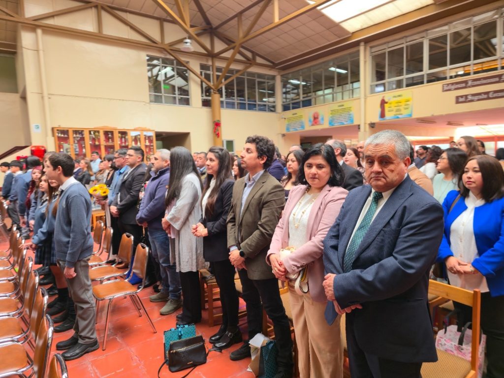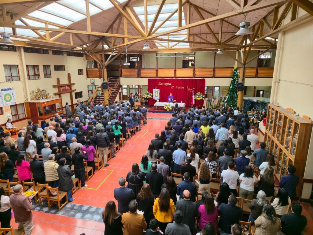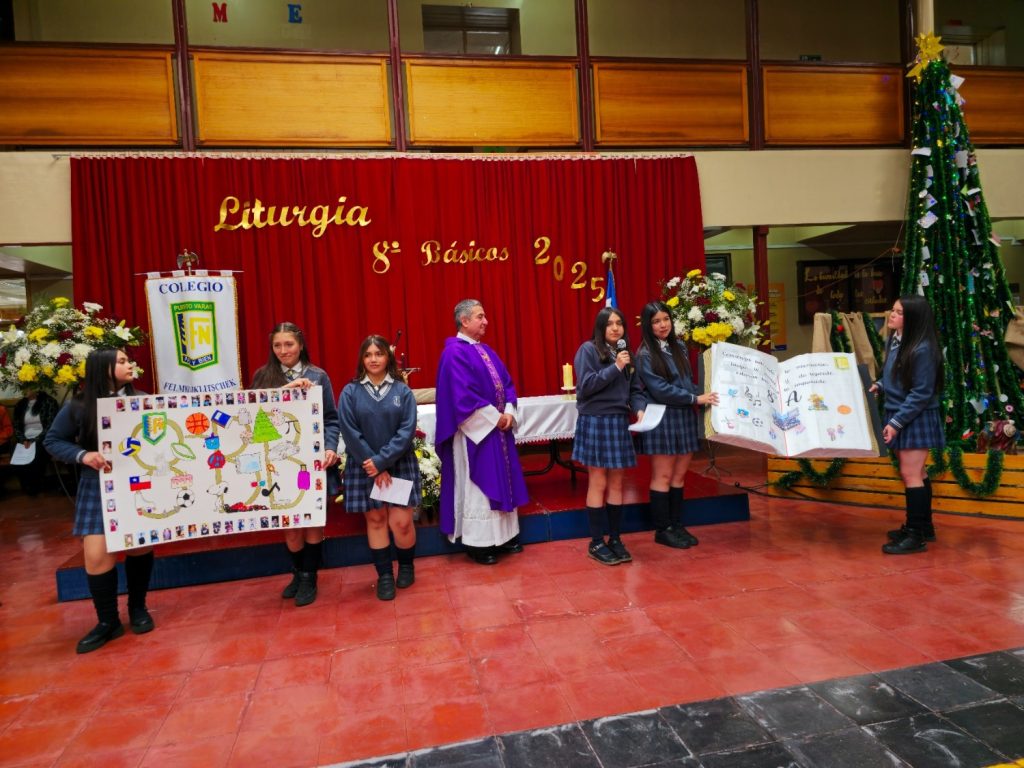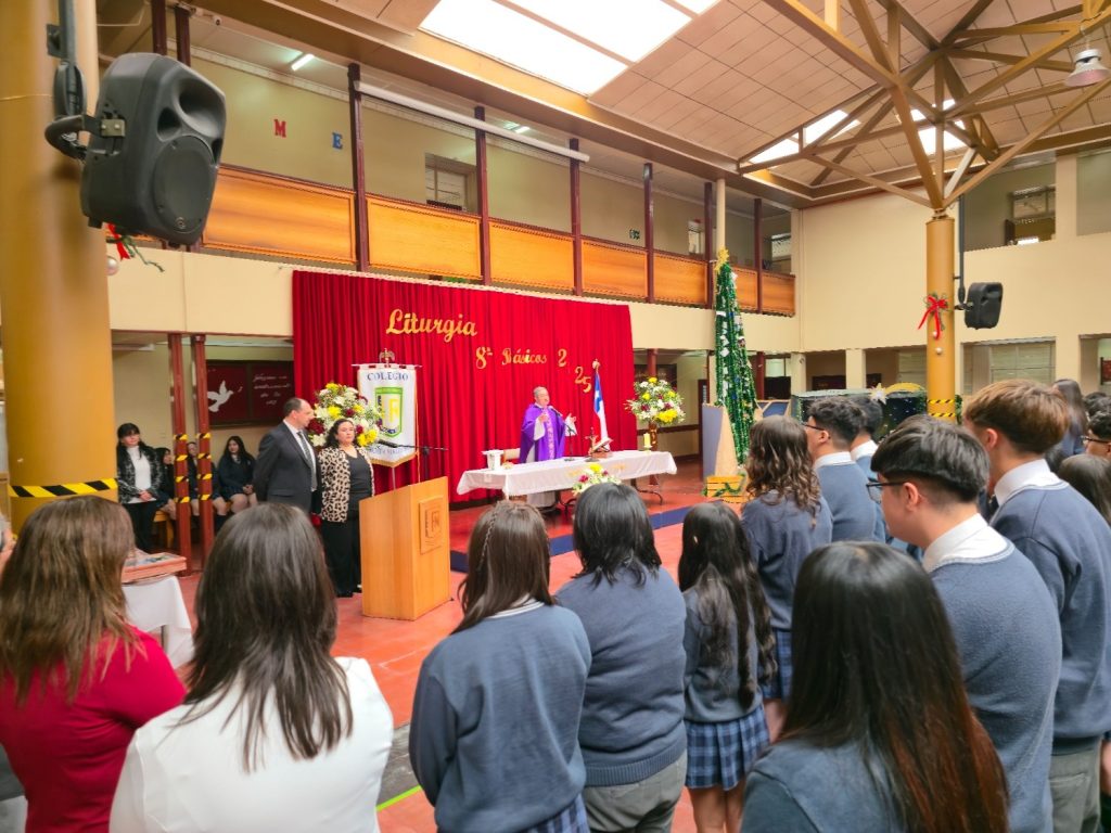 El pasado 16 de diciembre de 2025, en el Hall del Colegio, se realizó la Liturgia de 8° Básico 2025, una ceremonia solemne que reunió a estudiantes, docentes, asistentes de la educación, equipo directivo, padres y apoderados, quienes acompañaron a los alumnos en este importante momento de su trayectoria escolar.